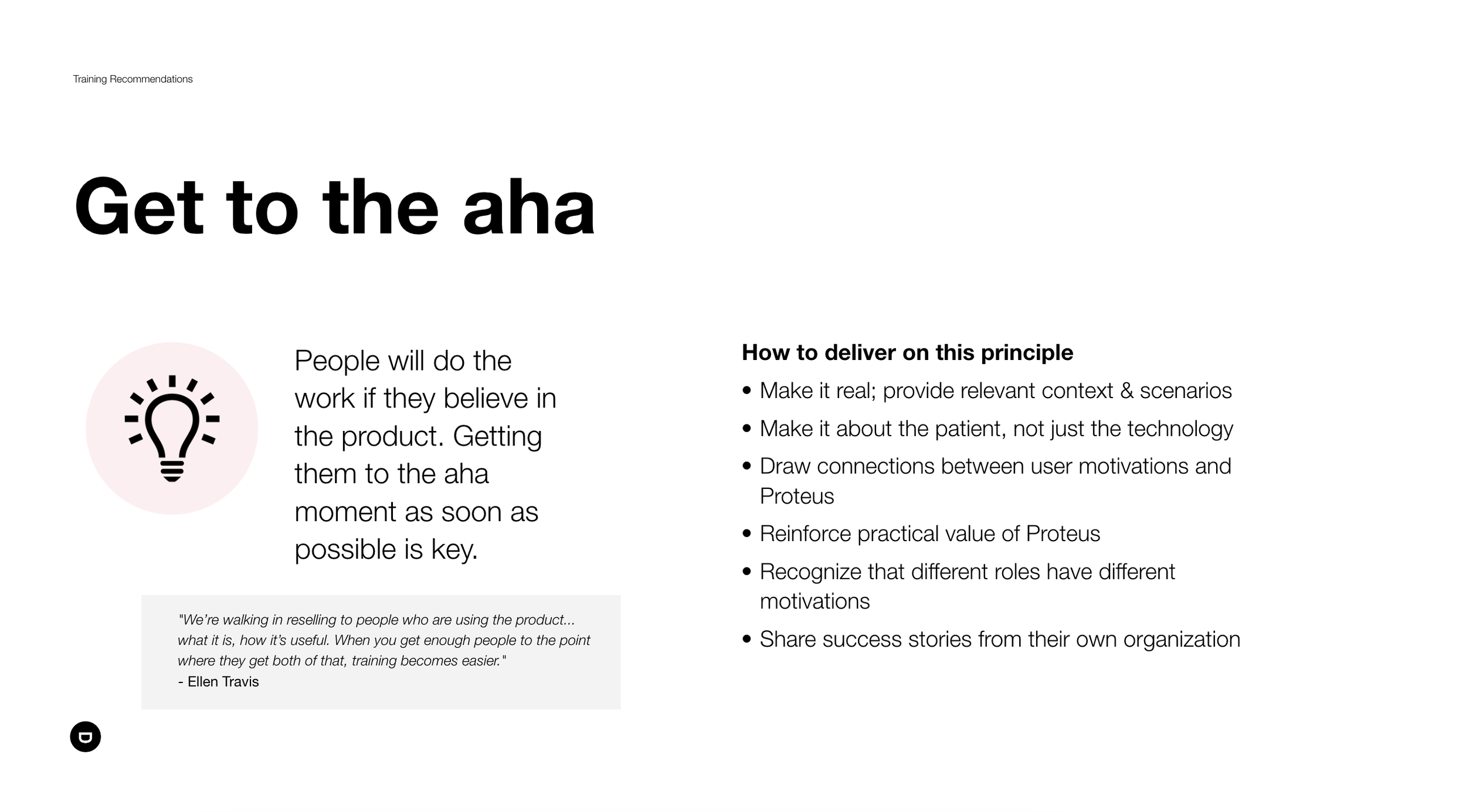 Clinicians may not connect the value of Proteus to their work and patients until they see it’s effect first hand, leaving objections and concerns hidden.
